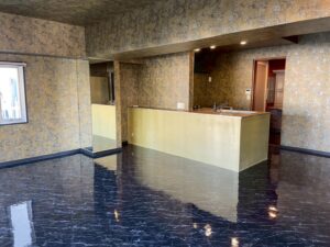 間仕切り壁を撤去して、段差を解消いたしました。