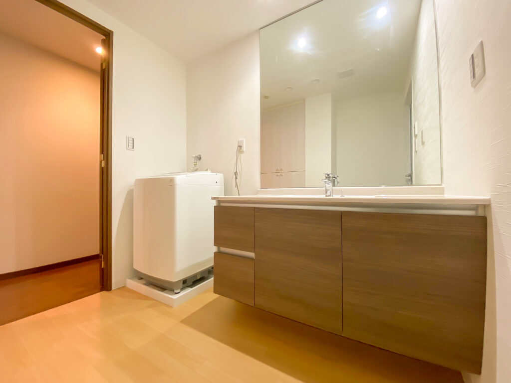 洗濯機と洗面台の間にある壁を撤去して、開放的な空間に生まれ変わりました。